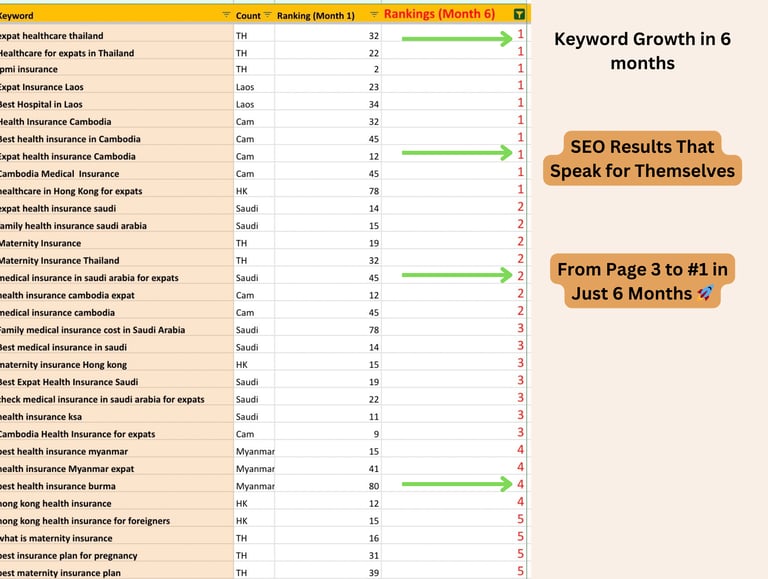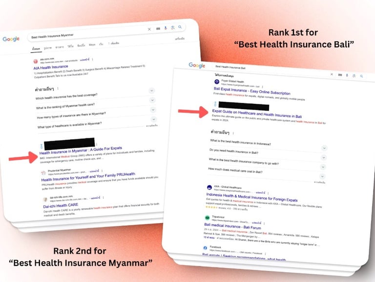 We target keywords that match what your ideal customers are already searching — not just high-volume fluff. (Think: "physio in Sathorn” not just “back pain tips”.)