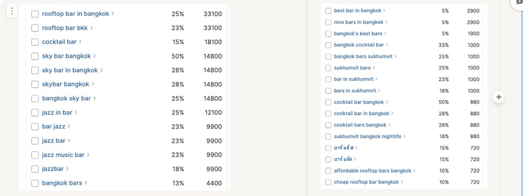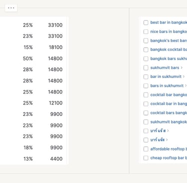 Here are some search volumes for Bars in Bangkok. 📊 The data is clear—Bangkok’s bar and nightlife scene is a massive opportunity for local SEO dominance. If your bar isn’t ranking for these searches, you’re leaving customers (and revenue) on the table.